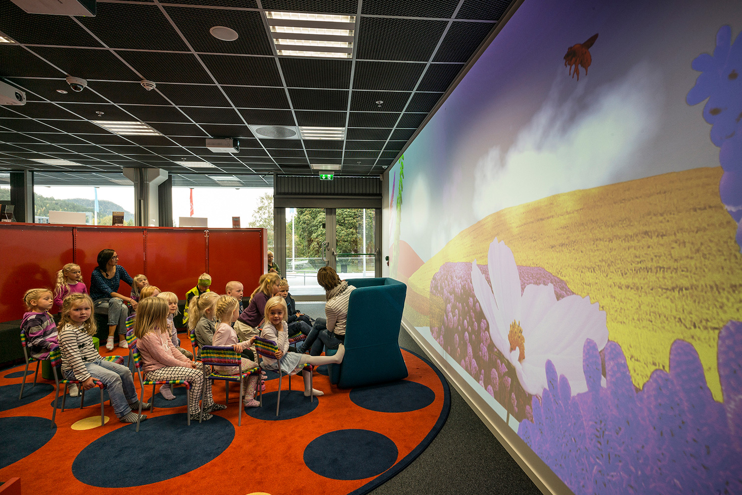 BS Eurobib a fourni l’ensemble du mobilier et de l’éclairage. La décoration intérieure se veut colorée, lumineuse et élégante. L’objectif n’était pas de créer une simple bibliothèque, mais un lieu incontournable qui soit un véritable espace de rencontre pour les habitants de Kongsberg. Pour concrétiser ce projet, BS Eurobib est restée fidèle à la tradition tout en intégrant de nouveaux médias et des solutions interactives.