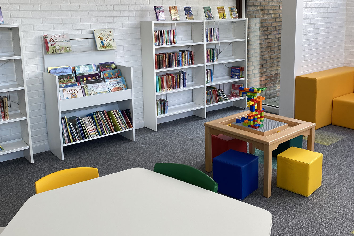 Bac à albums avec panneau de fond ajustable