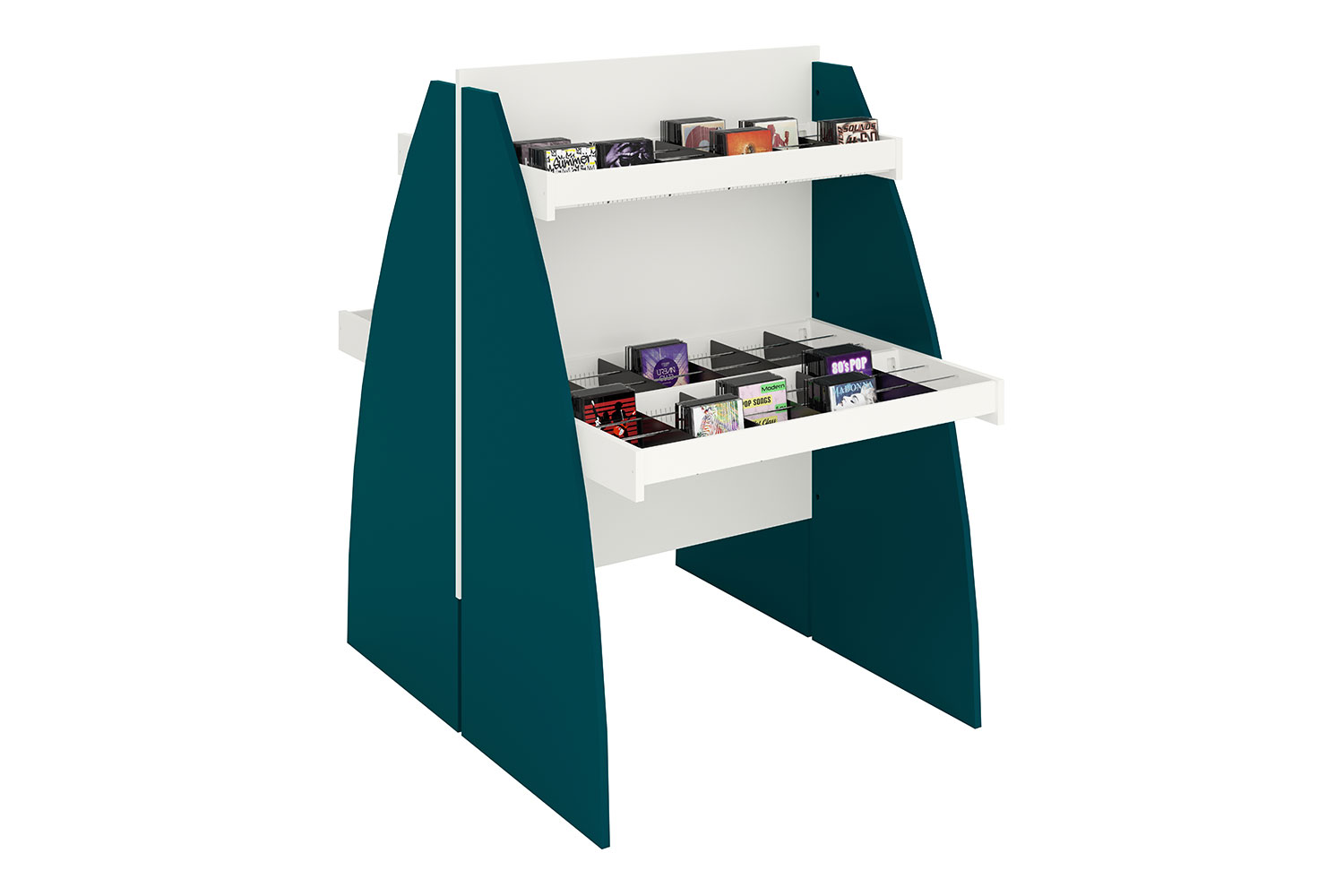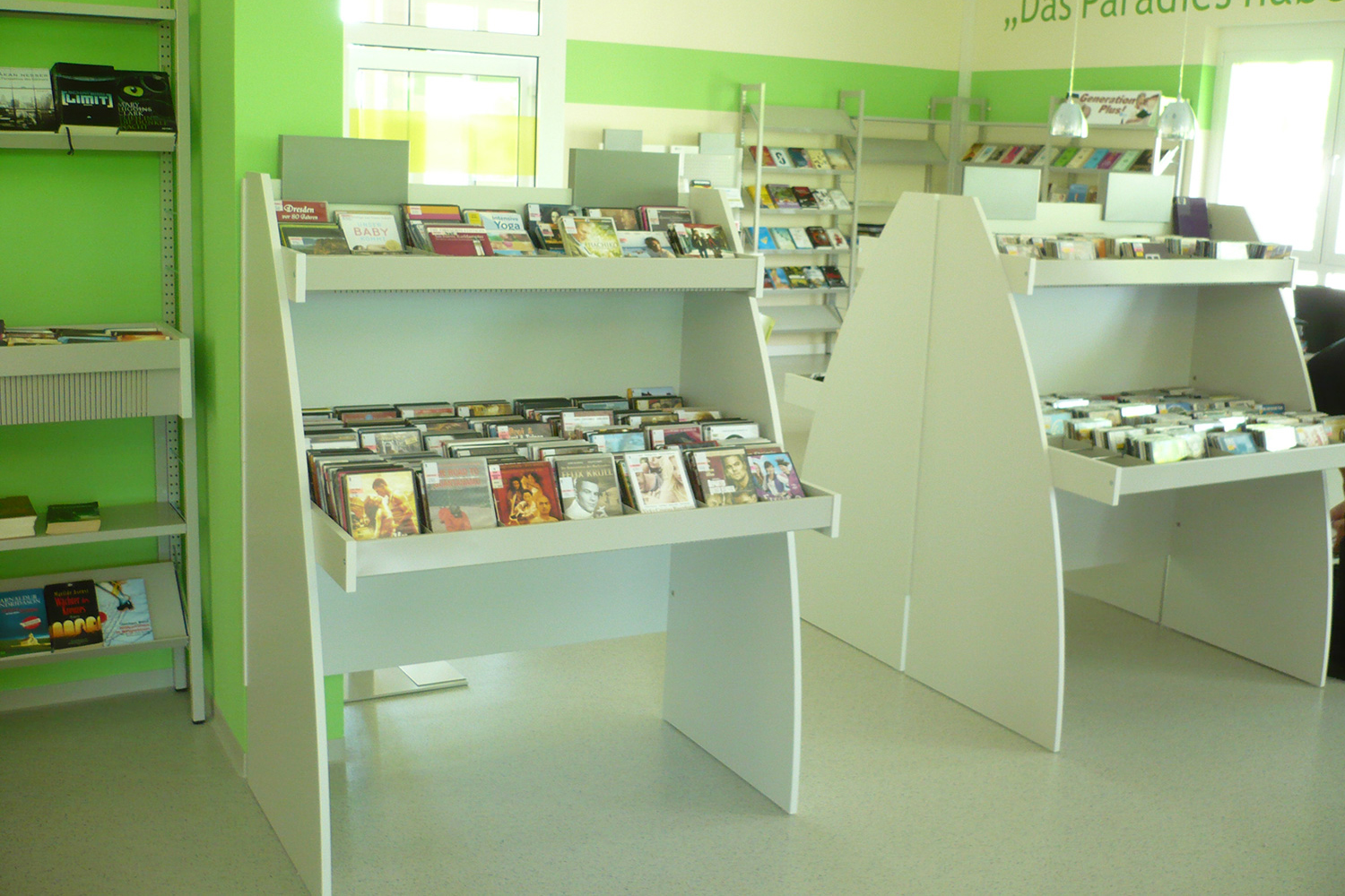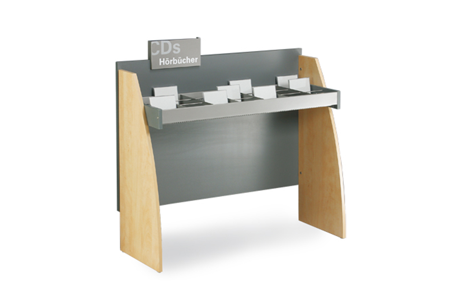 Les lignes arrondies du bac à médias audiovisuels en bois Sinus créeront une atmosphère du plus bel effet dans votre bibliothèque. Il se décline en 4 modèles différents. Ce bac à médias est disponible en modèle simple ou double face, avec à chaque fois un ou deux niveaux de présentation pour les médias.