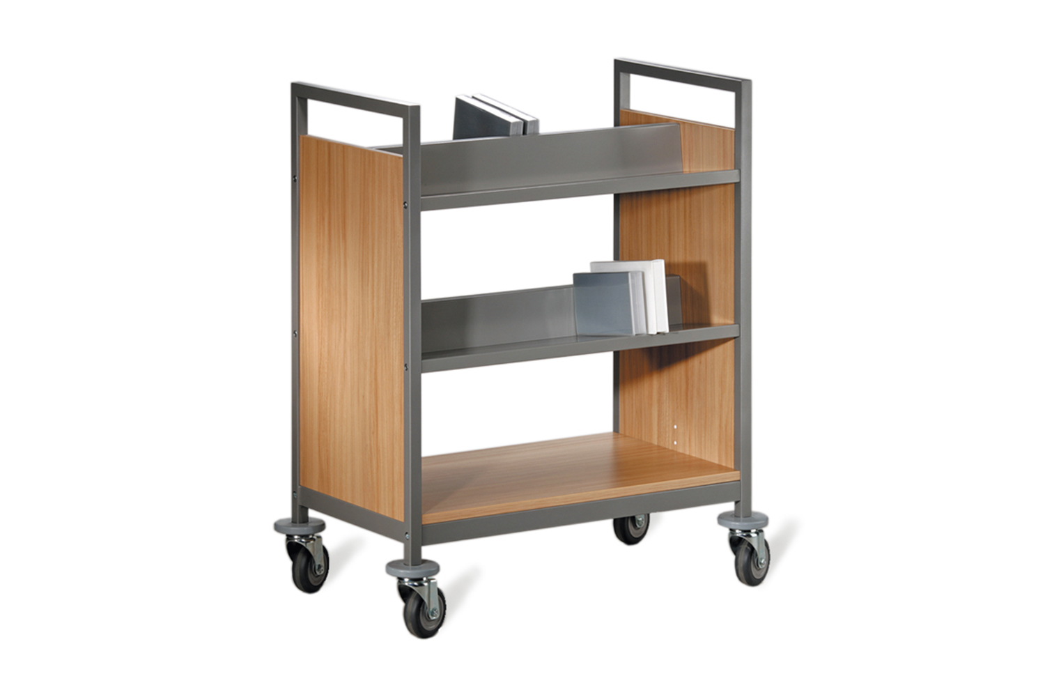 La conception robuste et multifonctionnelle de ce chariot à livres lui permet de s’adapter aisément à toutes les exigences spécifiques des bibliothèques ou institutions. Ses nombreuses fonctionnalités telles que des séparations médianes fixes ou amovibles, des tablettes horizontales ou inclinées, en bois ou en métal, en font un chariot à livres polyvalent qui répond non seulement aux besoins quotidiens des bibliothèques, mais aussi aux demandes spécifiques.