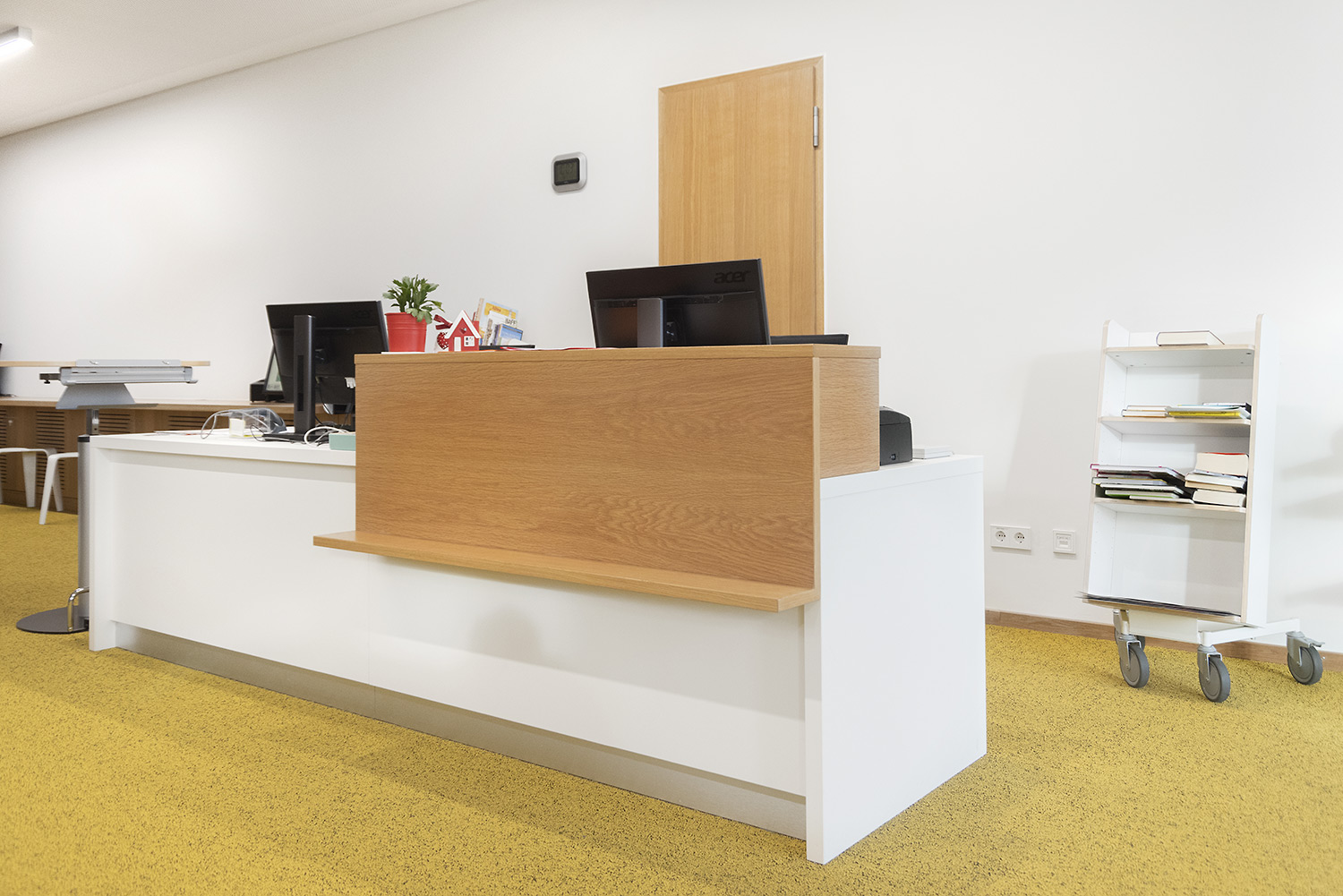 Nous utilisons du contreplaqué de bouleau – ici avec les bords visibles – pour créer une surface à la fois durable et robuste. Idéal pour les environnements de bibliothèque les plus exigeants !