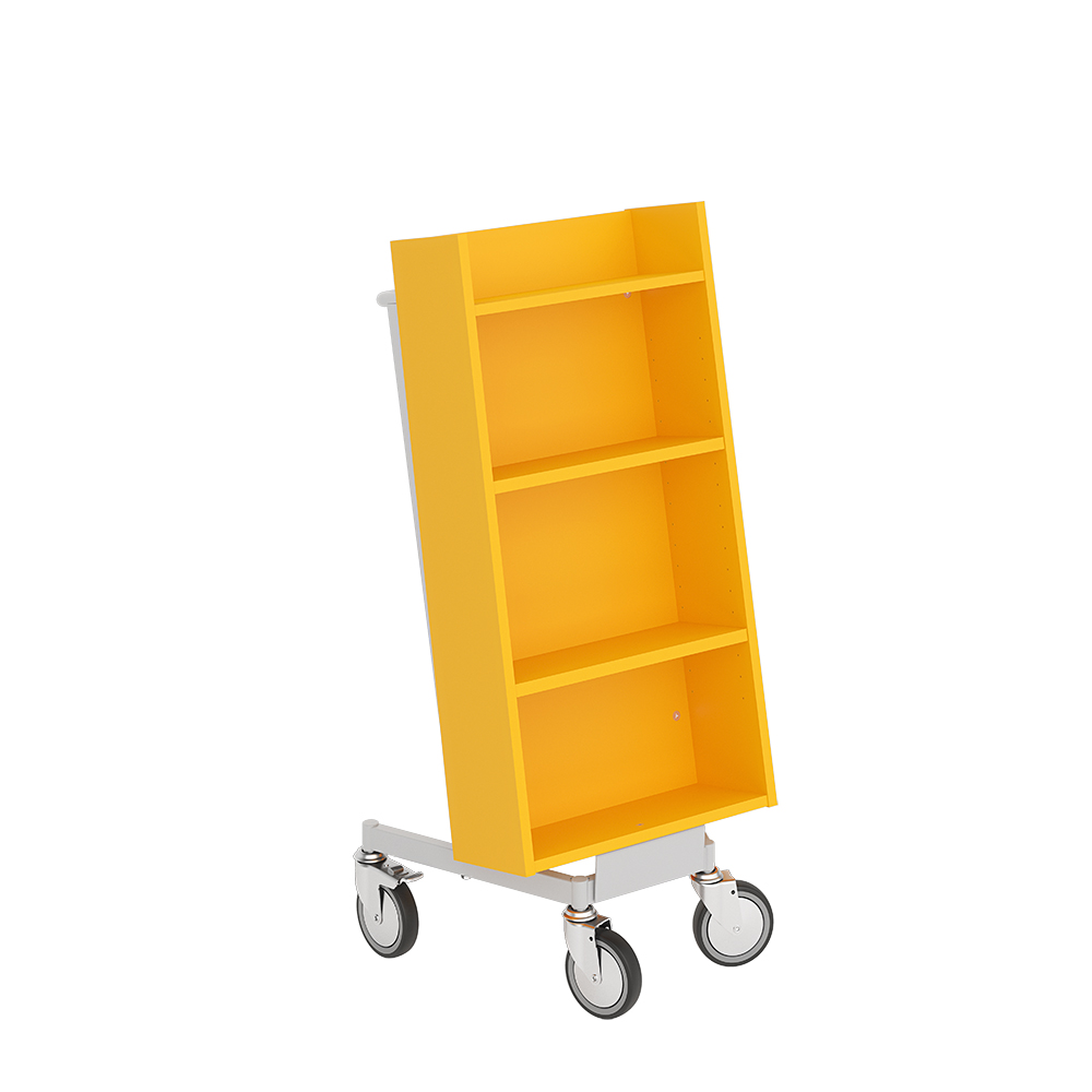 Pratique chariot simple face à quatre étagères inclinées, dont deux amovibles.