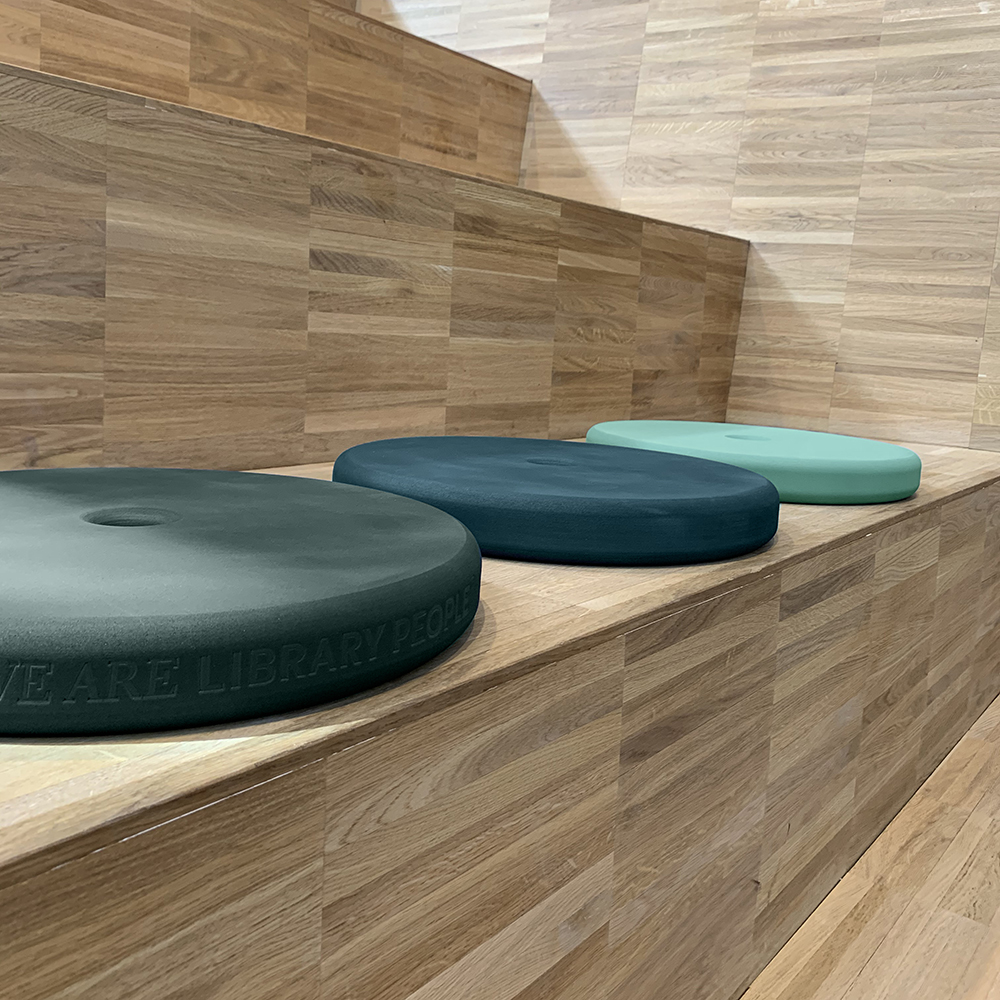 Le coussin existe dans 2 diamètres et dans des coloris différents. A poser sur le sol mais aussi sur gradins ou banquettes.