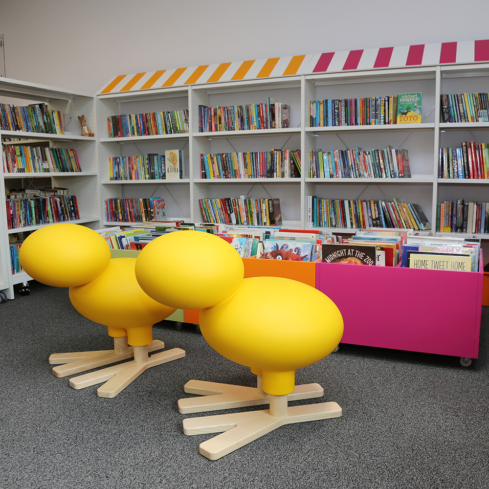 Happy Bird est un compagnon adorable qui invite les enfants à découvrir la bibliothèque. S’utilise pour indiquer la zone enfants, comme siège ou comme objet de décoration !