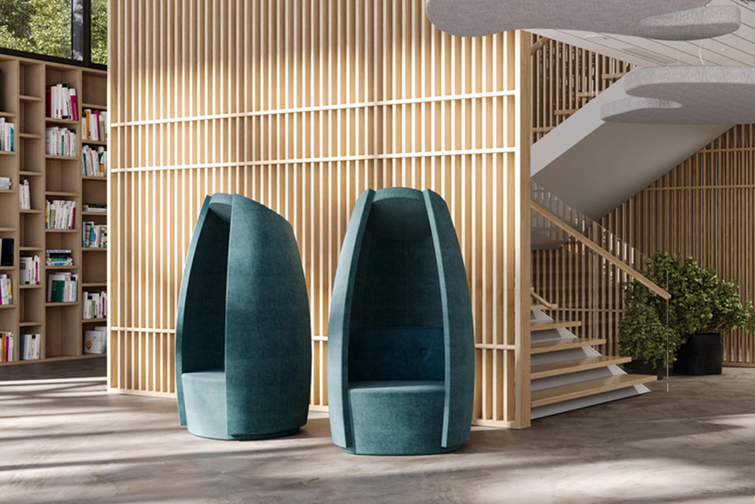 Le son est un élément fondamental dans la création de l’ambiance de tout espace, en particulier dans les bibliothèques où la tranquillité et la concentration sont primordiales. Notre approche de conception biophilique des bibliothèques se concentre sur l’intégration harmonieuse des paysages sonores, en harmonie avec l'architecture et les objectifs de la bibliothèque. Afin de satisfaire à ces exigences, nous sélectionnons méticuleusement des éléments sonores qui masquent les bruits de fond parasites, mais qui de surcroît améliorent l’ambiance générale du lieu, sans submerger les usagers.