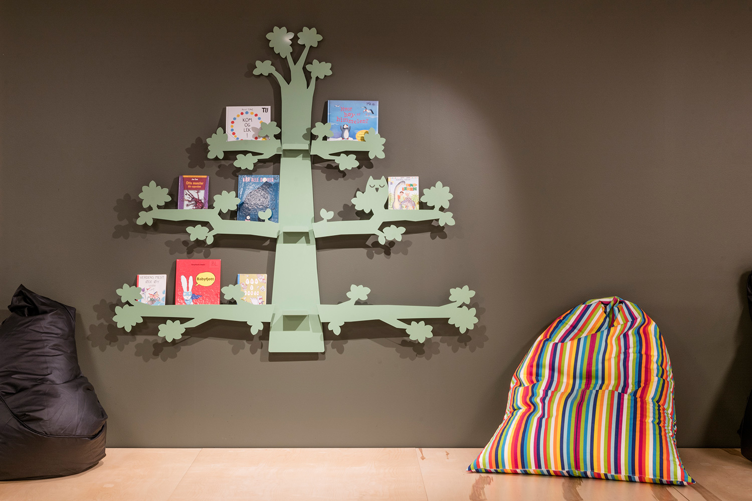 Les bacs à albums et présentoirs peuvent être installés n'importe où dans l'espace jeunesse pour illustrer le thème de la nature tout en ajoutant une touche de fantaisie parmi le mobilier et la décoration d'intérieur de la bibliothèque.