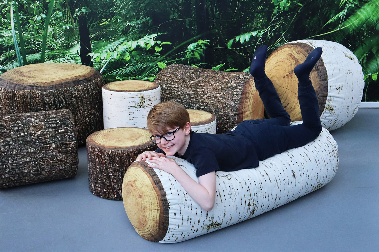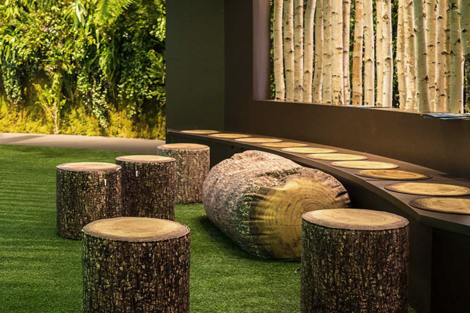 Certains mobiliers inspirés de la nature ressemblent étonnamment à des souches, des branches d’arbres, etc. Il faut les toucher pour s'en convaincre. Ces équipements ludiques peuvent être utilisés comme poufs, chaises, tables d'appoint décoratives et repose-pieds et s'intègrent facilement au reste de la bibliothèque.