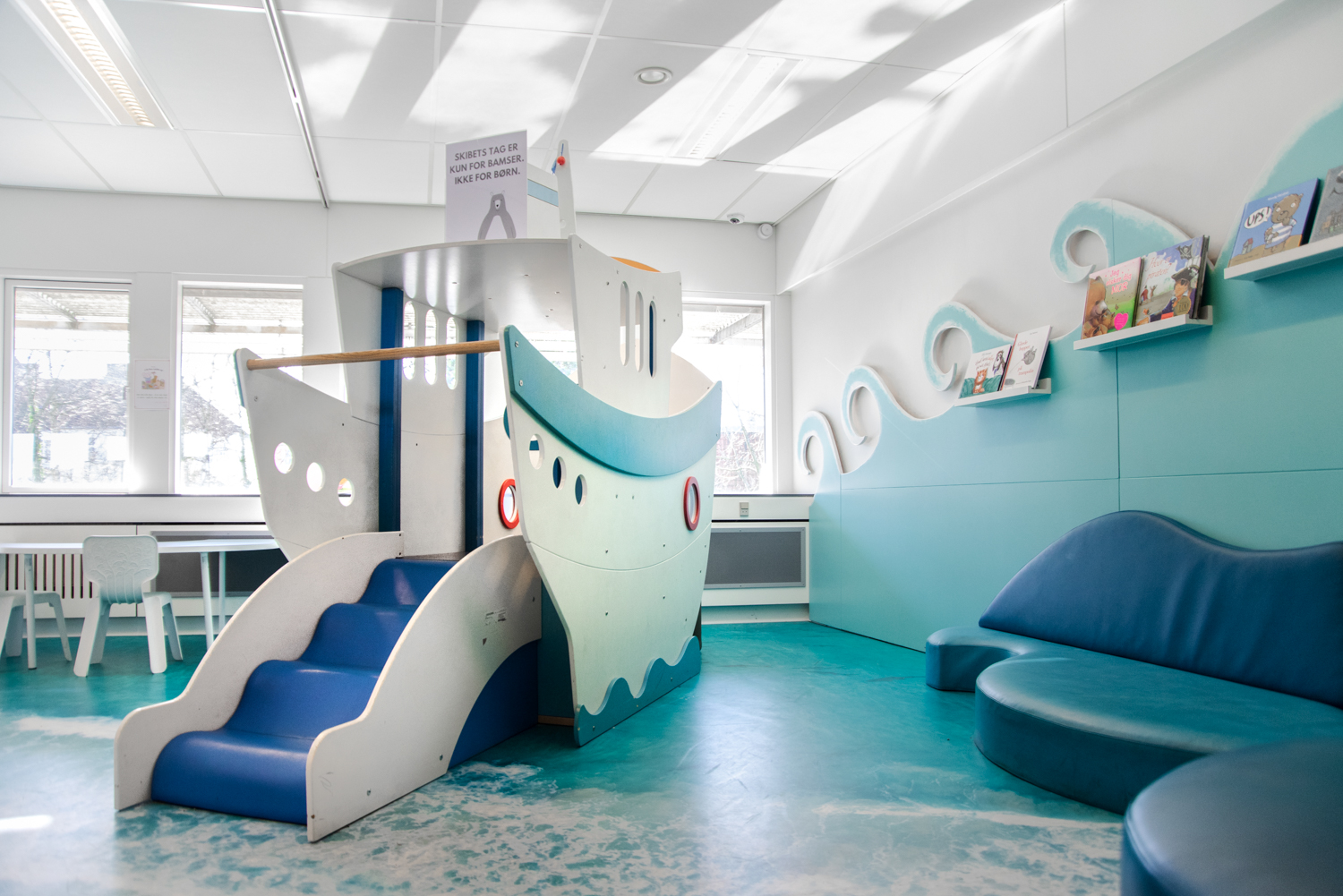 Chaque section de l'espace des enfants est unique et distincte les unes des autres. Les couleurs, le décor et le mobilier sur mesure font se démarquer chaque secteur et délimitent clairement le passage d'une zone à l'autre comme par exemple, de la forêt à la plage. Comme le concept biophilique fait partie intégrante de la section jeunesse, toutes les zones et tous les espaces sont reliés par la nature et donnent l'impression d'être à l'extérieur, où que l'on se trouve dans la bibliothèque.