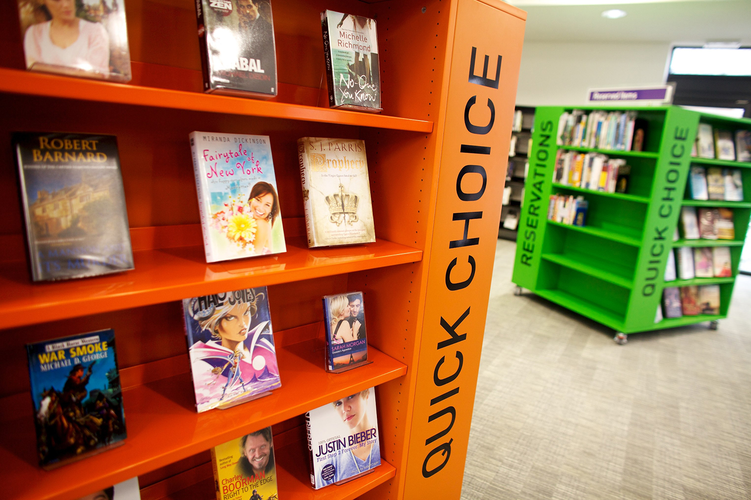 À l’instar du secteur de la distribution qui place volontairement des produits à proximité de la caisse et de l’entrée pour inciter les clients à acheter, les bibliothèques modernes actuelles exposent désormais les « coups de cœur » et les dernières nouveautés près de l’entrée ou du comptoir. Ces espaces offrent aux visiteurs un point de référence et la possibilité de sélectionner un ouvrage recommandé par la bibliothèque. Ce type de présentation épargne aux visiteurs toute recherche fastidieuse et exploite le pouvoir d’attraction de la couverture des livres.