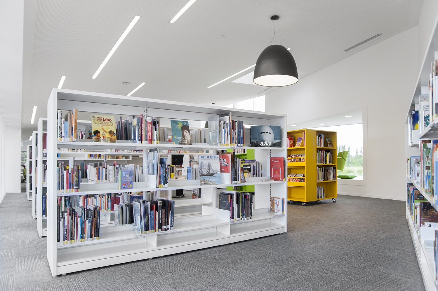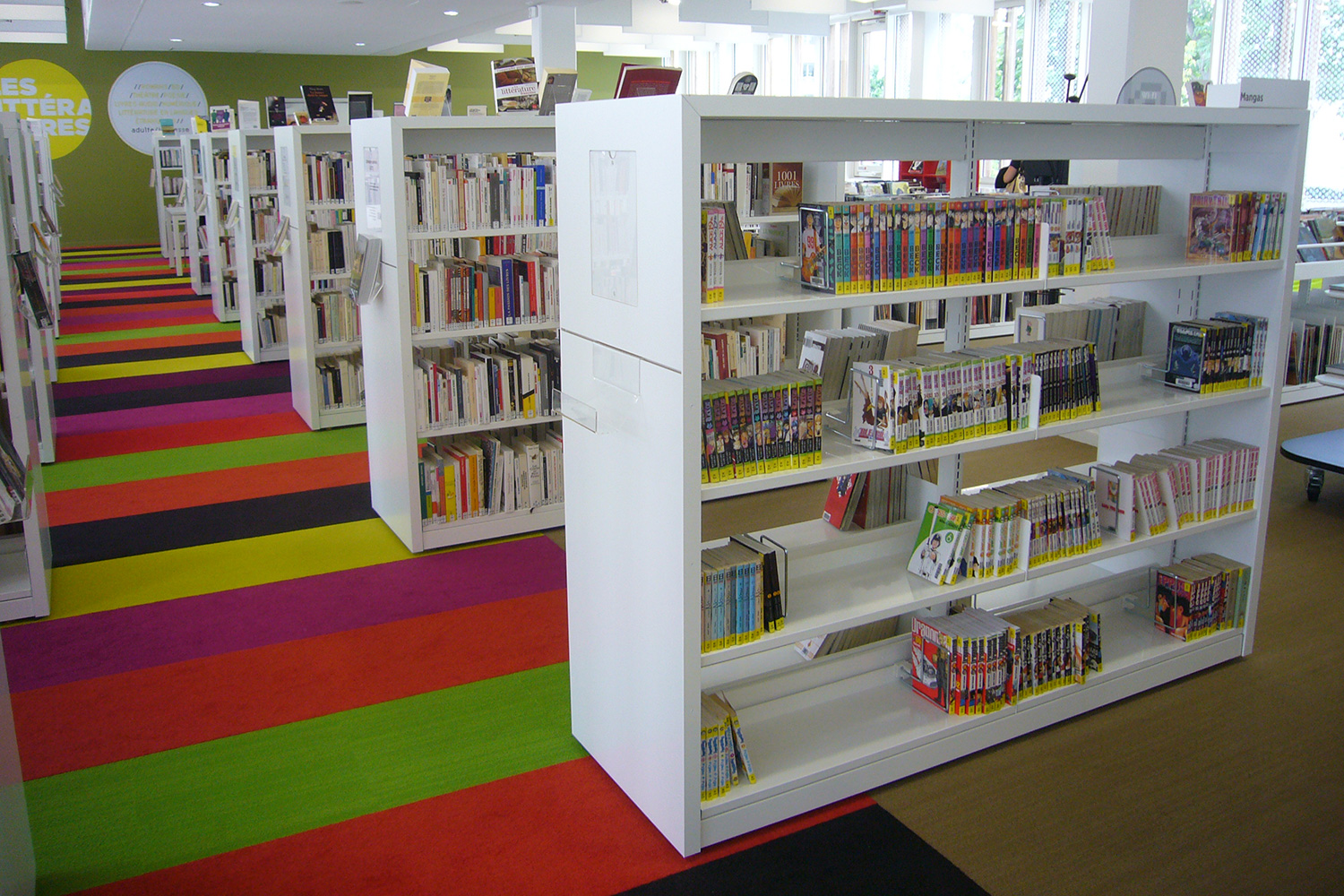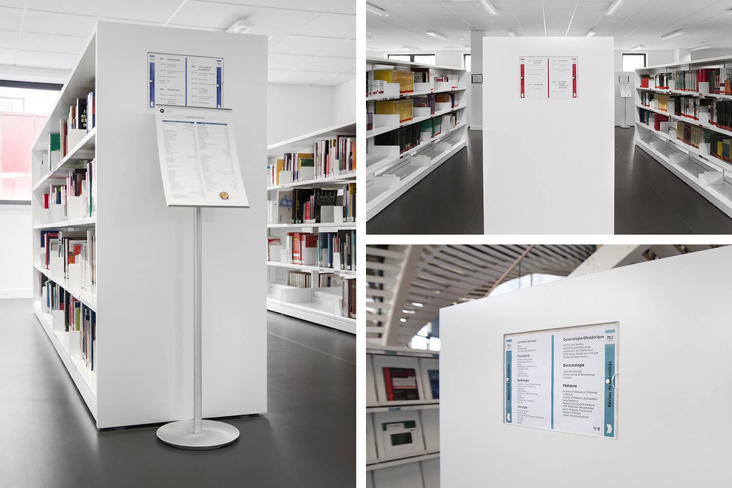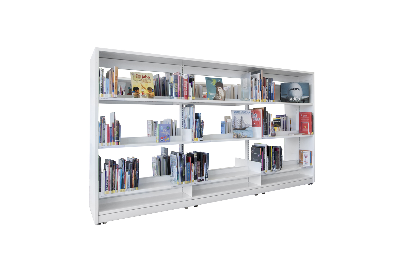 Un fer plat en aluminium laqué est fixé à l’avant du panneaux d’extrémité pour plus de protection et allonger la durée de vie. Un socle en métal peut être ajouté pour souligner l’encadrement du rayonnage.