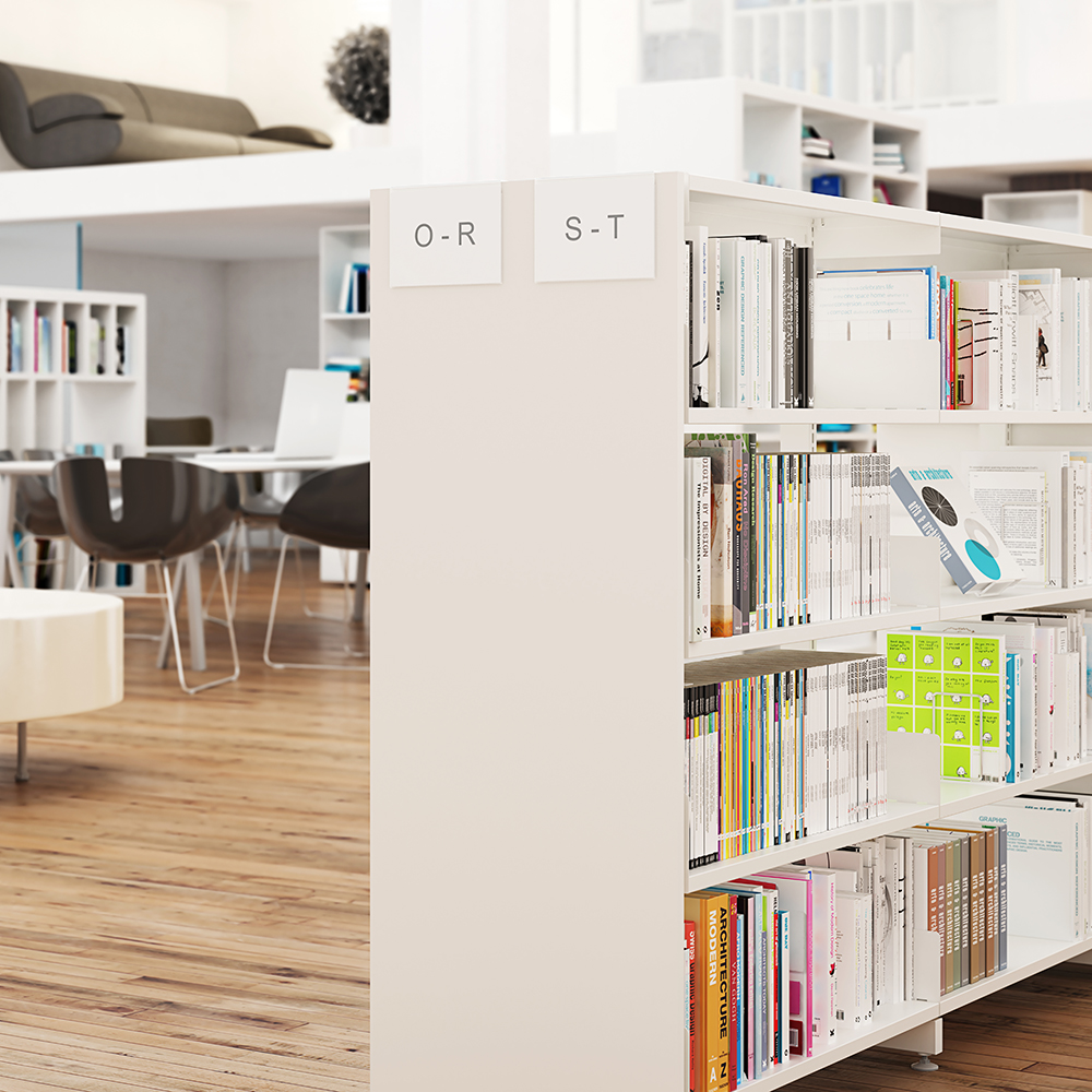 Porte affiche en acrylique anti-reflet pour panneau d’extrémité de rayonnage bois (max 22 mm) ou bac à livres (max 20 mm).