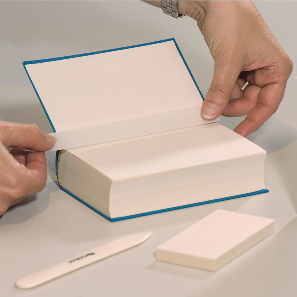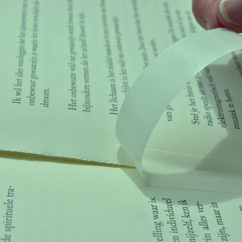 Idéal pour renforcer le joint entre la couverture et le corps du livre. Très grande adhérence et résistance à la déchirure. Discret et flexible, il convient parfaitement pour une fixation dans le pli ou pour coller des images, photos et imprimés dans des passepartout ou sur des supports sans laisser la moindre trace.