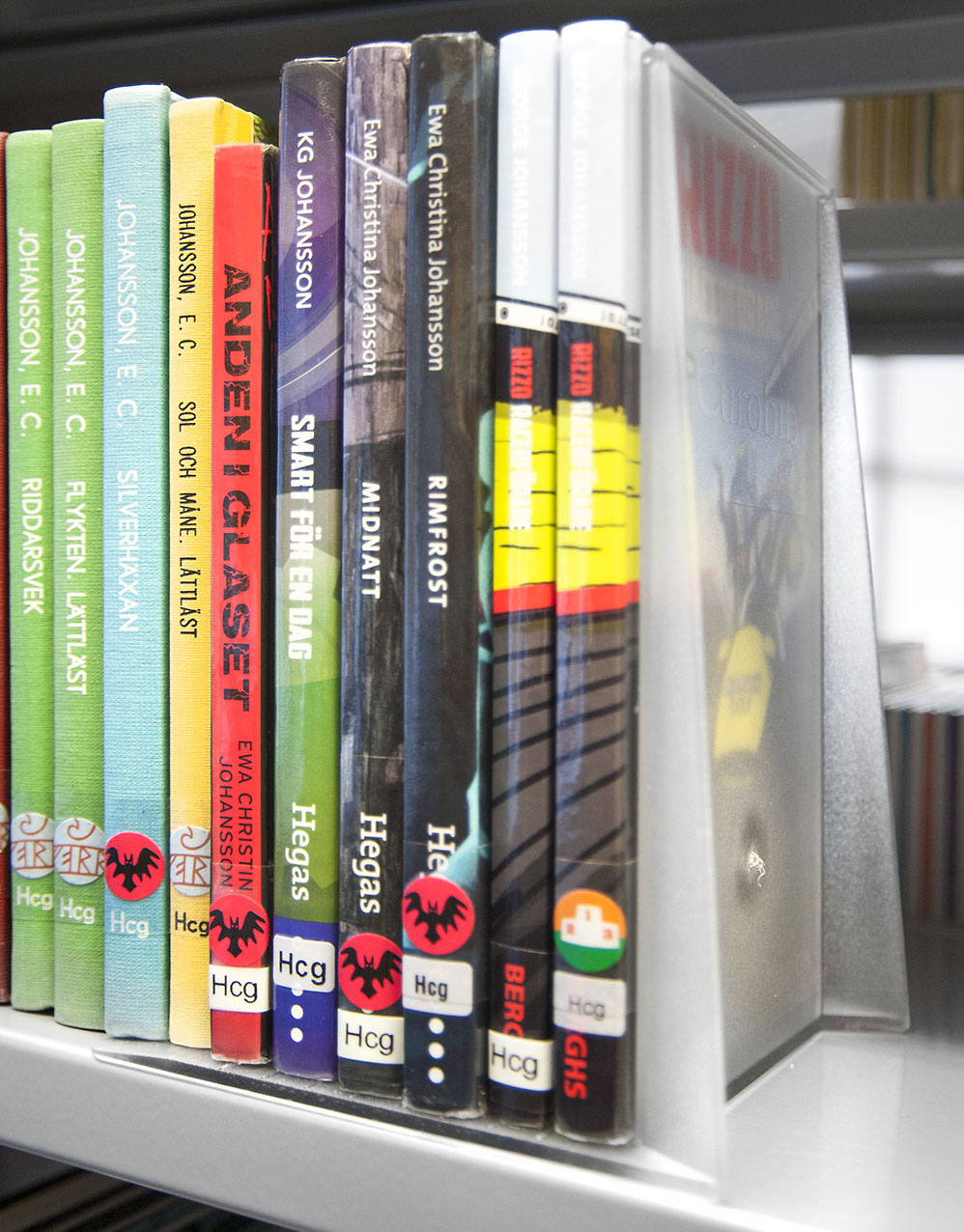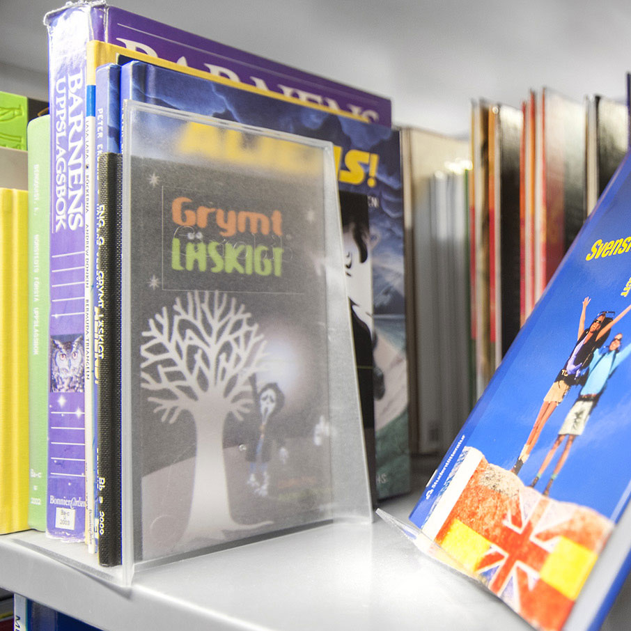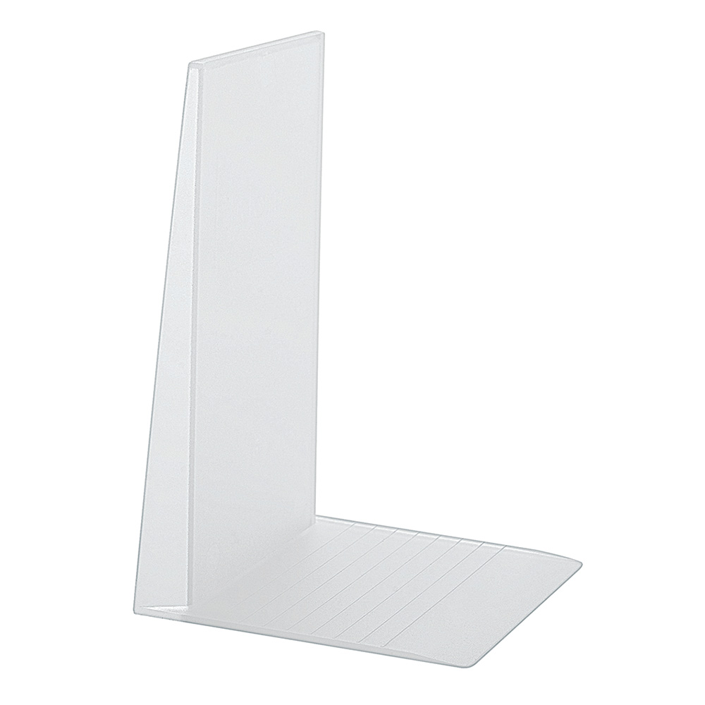 Serre-livres très maniables en plastique robuste, équipés de bandes antidérapantes.