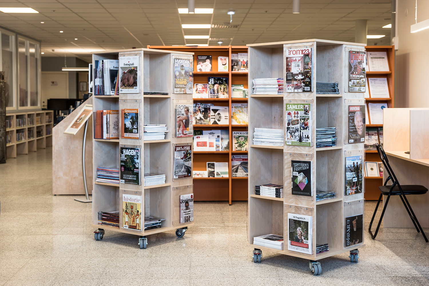 Rangement spacieux et facile d’accès des éditions précédentes dans les étagères, range-revues ou porte-catalogues.